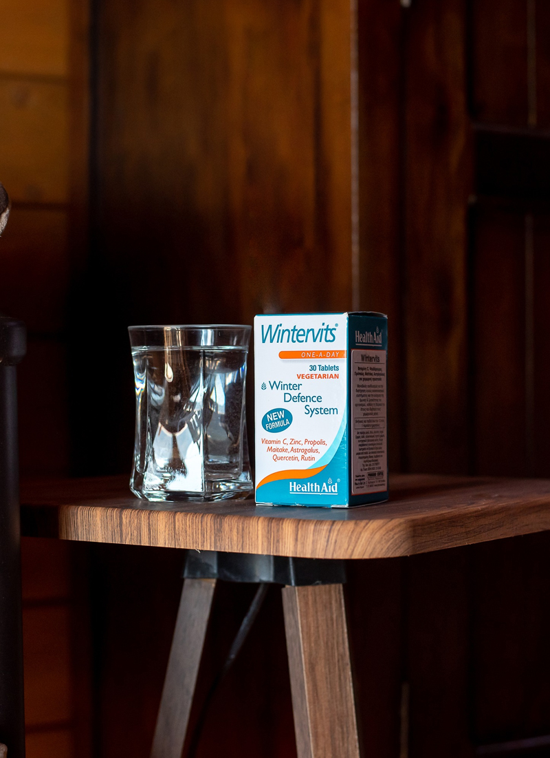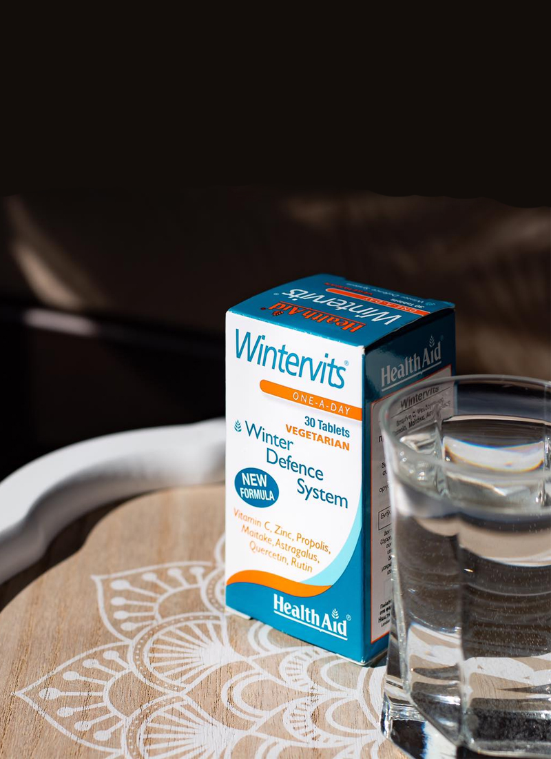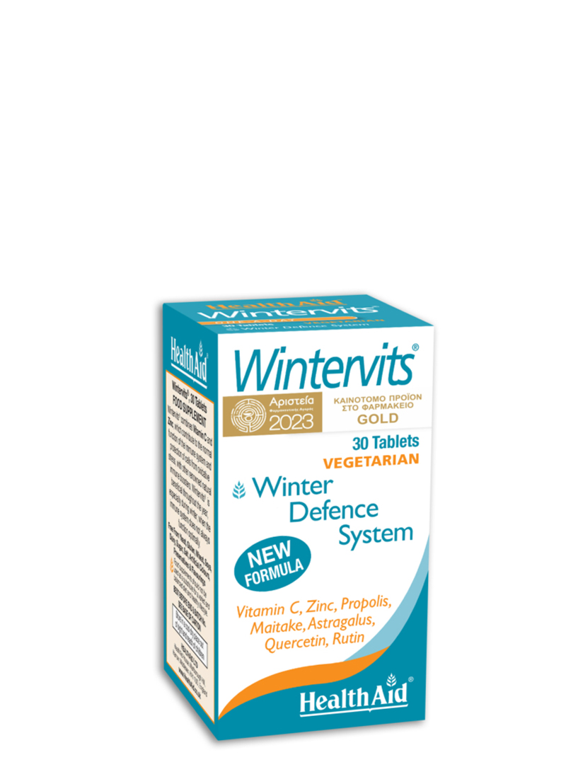 To Wintervits της Health Aid είναι σύνθεση που συνδυάζει την Βιταμίνη C με Ψευδάργυρο, Μαϊτάκε είδος μανιταριού με ιδιαίτερα τονωτικές ιδιότητες, Αστράγκαλους και Πρόπολη.