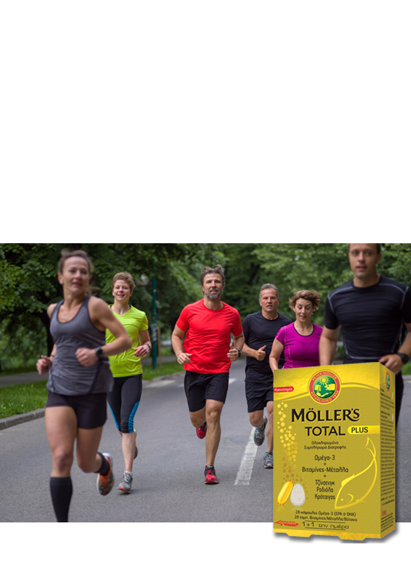 Το Mӧller’s Total PLUS παρέχοντας συνεργικό συνδυασμό ωμέγα-3 λιπαρών οξέων με πλήρη σειρά βιταμινών, μεταλλικών στοιχείων και με επιλεγμένα βότανα, καλύπτει διατροφικές ελλείψεις και ανεπάρκειες, προστατεύοντας μακροπρόθεσμα από πλήθος παθήσεων, ακόμη και πολύ σοβαρών, ενώ ταυτόχρονα προσφέρει αμέσως ενέργεια, ζωτικότητα και ευεξία, συμβάλλοντας καθοριστικά σε μια καλύτερη ποιότητα ζωής.
