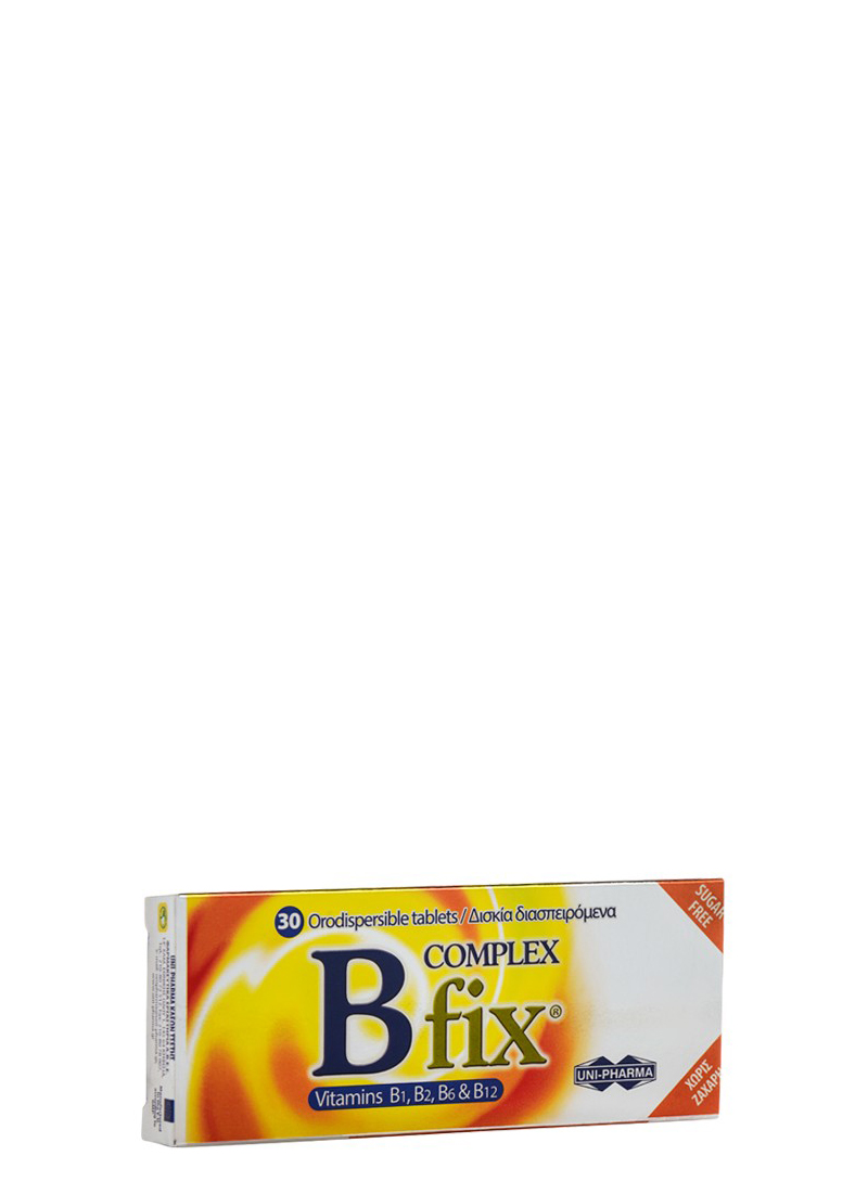 Το B Complex fix είναι ένα συμπλήρωμα διατροφής που συμπληρώνει τις ανάγκες του οργανισμού σε μια ποικιλία βιταμινών Β. Τα συστατικά που περιέχει το βοηθούν στο να συμβάλλει στη φυσιολογική λειτουργία του νευρικού συστήματος και των μεταβολικών διεργασιών που αποσκοπούν στην παραγωγή ενέργειας. Επίσης, η περιεκτικότητά του σε Βιταμίνη Β1, Β2, Β6 & Β12 ωφελεί τη φυσιολογική ψυχολογική λειτουργία και τη μείωση της κούρασης και της κόπωσης. Πιο αναλυτικά: